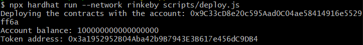 Para fazer isso, vamos implantá-lo em um nó HardHat local. Para obter uma lista das contas falsas locais criadas pelo HardHat, execute o comando: