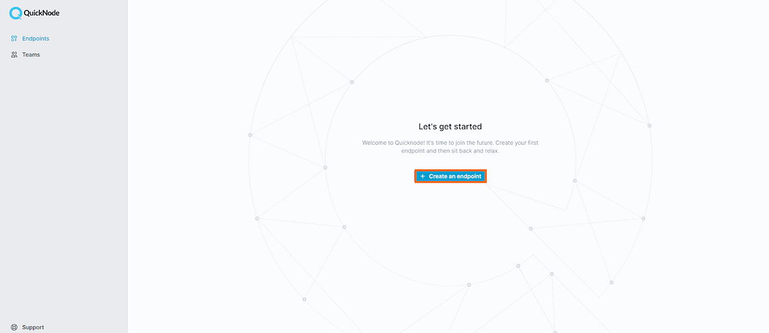 7. Agora, vamos para o painel do QuickNode . Selecione 'Criar um endpoint':