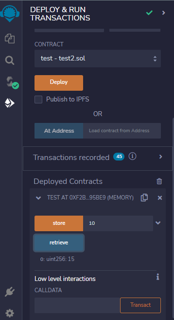 Certifique-se de alterar o contrato para test2 antes de implantar. Agora, vamos armazenar um valor ao seu contrato e perceber que há cinco a mais no valor original quando o recuperamos.