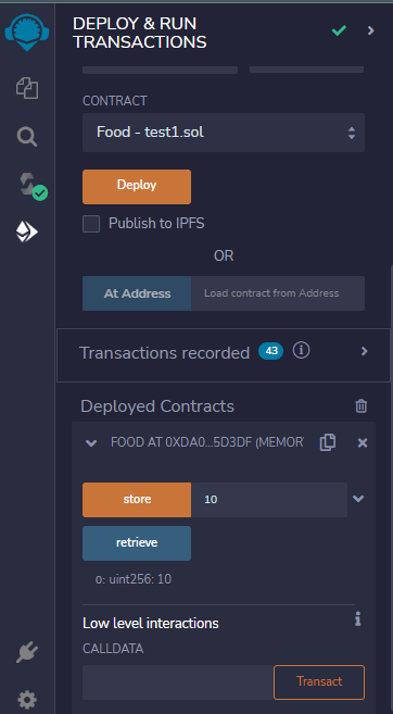 Armazenamos o número 10 em nosso contrato e o recuperamos através das funções de recuperação.
