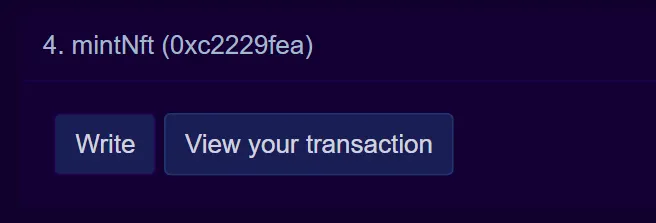 Volte para “Write Contract" e clique em “Write ” para a função mintNFT.