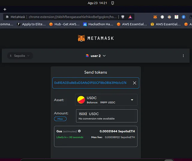 dexContract.depositUSDC(1000000000); // 1000 USDC