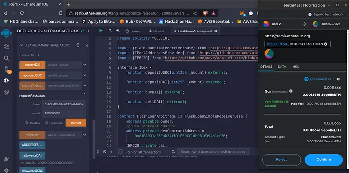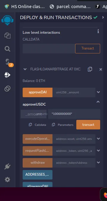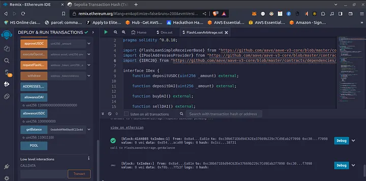 Agora vamos testar os contratos usando o ambiente de desenvolvimento Remix IDE, mas para ser mais específico, aqui está onde a Arbitragem de Empréstimo Relâmpago acontece: