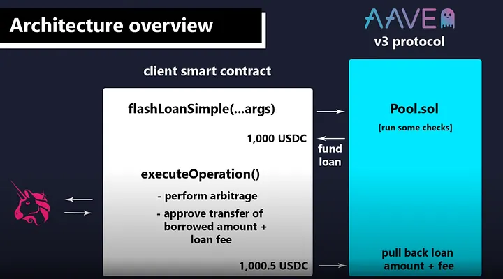 depositUSDC,depositDAI,buyDAIesellDAIsão definidos.Contrato FlashLoanArbitrage: O contrato principal, herdando de, inicializa endereços e contratos para DAI, USDC e o DEX. Ele implementa a função