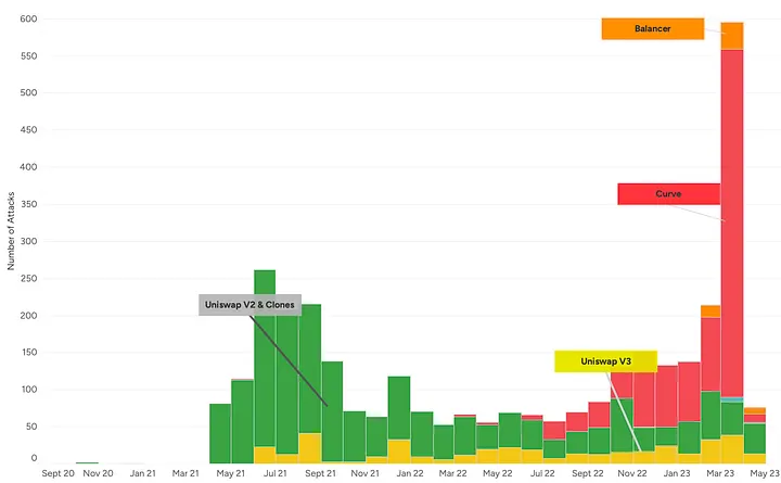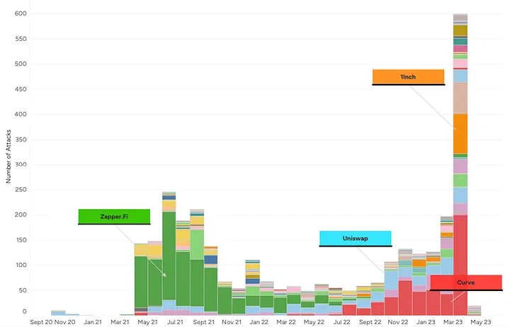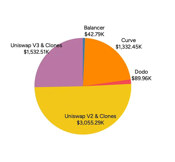 O ataque funciona não apenas na Uniswap V2. Na verdade, ultimamente, como a Uniswap V2 é ofuscada por outros protocolos, apenas uma pequena parte dos ataques sanduíche de LP reverso acontecem na Uniswap V2. Curve, Balancer, Dodo e Uniswap V3 e outros estão todos sujeitos a esse tipo de ataque.