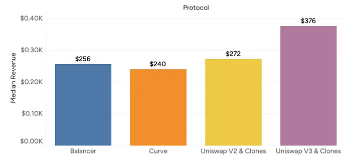 Historicamente, a Uniswap V2 foi a principal fonte de alvo para ataques e a principal fonte de receita para bots de MEV. No entanto, nos últimos 12 meses, a Uniswap V3 e o Curve se tornaram os alvos principais.