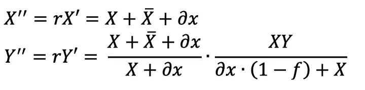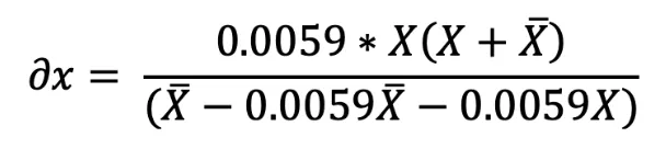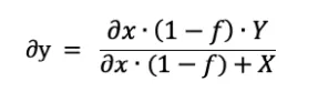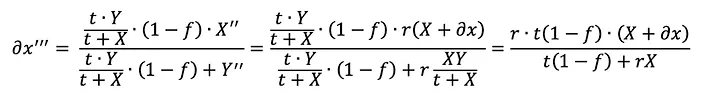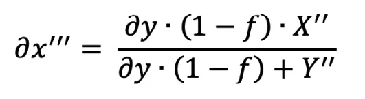 A venda do valor ∂y inicialmente recebido do ativo Y de volta à pool após a mudança de liquidez produzirá o seguinte valor ∂x''' do ativo X: