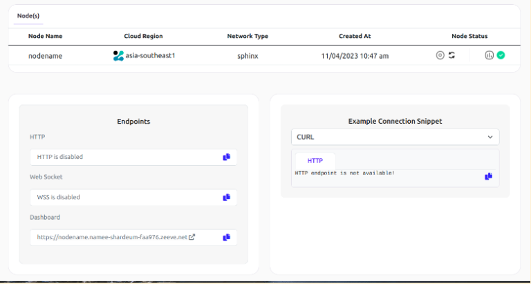 Depois que os tokens forem creditados em sua carteira, inicie a implantação do nó validador no Zeeve. Se você é novo no Zeeve, crie sua conta e confirme seu e-mail. Após a confirmação, você pode acessar o painel do Zeeve para gerenciar seus nós existentes ou configurar um novo. Este guia explica a criação de um novo “Nó Validador” para a Sphinx 1.X por meio das instruções passo a passo listadas abaixo: