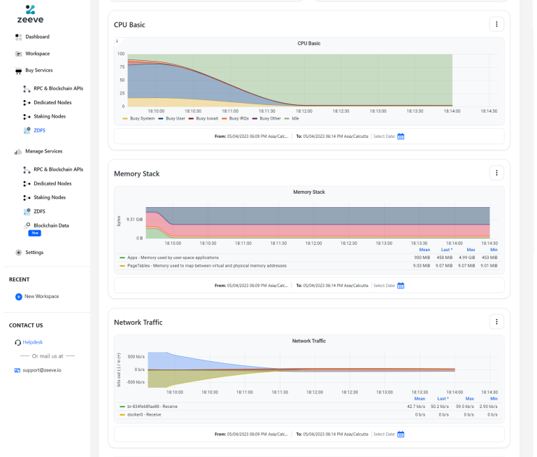 O painel também exibe o tráfego da rede, a pilha de memória e o espaço de disco total consumido. Todos esses parâmetros ajudam a identificar o status de integridade do nó para manter o alto desempenho dos nós e eliminar os problemas que levam ao tempo de inatividade.