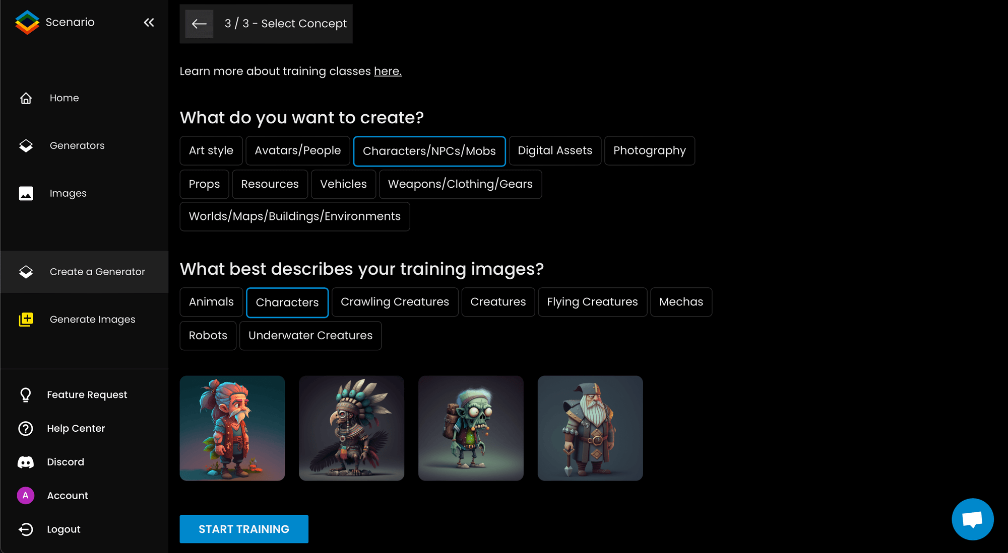 Vá até o Scenario e inscreva-se, se você ainda não o fez. Uma vez que você está logado, clique na seção de "Create a Generator" (criar gerador):