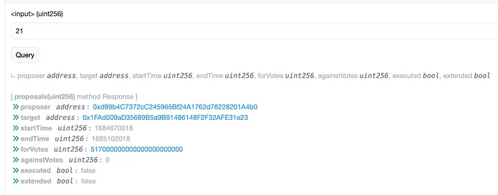 Ao executar a proposta, devido ao uso da instrução delegatecall, a proposta de contrato maliciosa precisou apenas modificar seu próprio espaço de armazenamento para modificar sincronicamente o espaço de armazenamento do contrato de Governança. Portanto, a proposta maliciosa alterou o saldo de cada contrato zumbi para 10.000 e o espaço de armazenamento do contrato de Governança também foi modificado. Dessa forma, o atacante garantiu a si mesmo 1.000.000 de votos falsos. Aqui compartilho uma visão diferente do número de votos falsos em relação à visão do samczsun, que pensa que são 1.200.000 votos falsos.