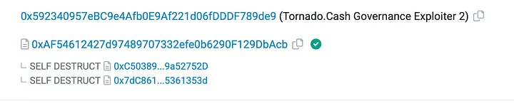 Em 20 de maio de 2023 às 07:25:11 (UTC), o Tornado.Cash foi atacado por uma proposta maliciosa. O atacante drenou com sucesso 473.000 tokens TORN. Em um curto período de tempo, o atacante trocou 100.000 TRON por 54 ETH. Mais tarde, ele depositou 372 ETH no Tornado Cash para lavar seus lucros.