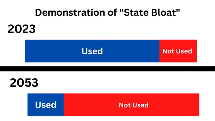 E se a cadeia mantiver cada parte dos dados que estão sendo implantados, em 50 anos você terá uma blockchain onde talvez apenas 5% da cadeia seja realmente utilizada e o resto da cadeia seja bagagem de lixo do histórico.