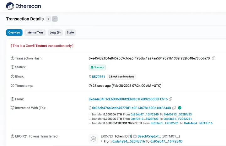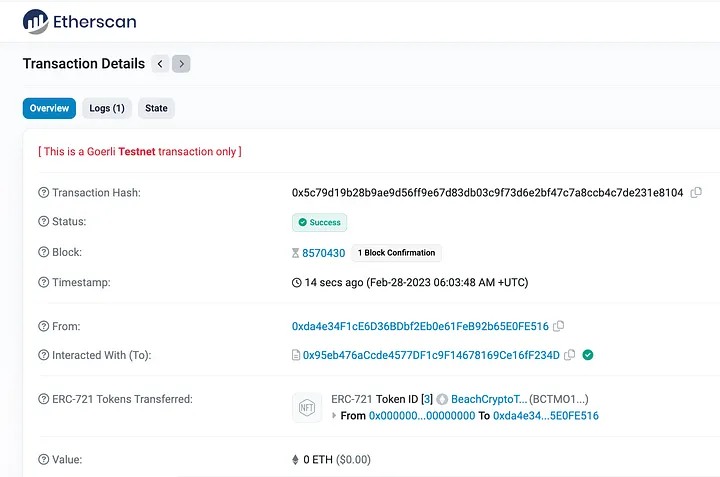 BeachCryptoTestMintONFT721-V1, BCTMO1, 61174, 0xbfD2135BFfbb0B5378b56643c2Df8a87552Bfa23, 1, 5