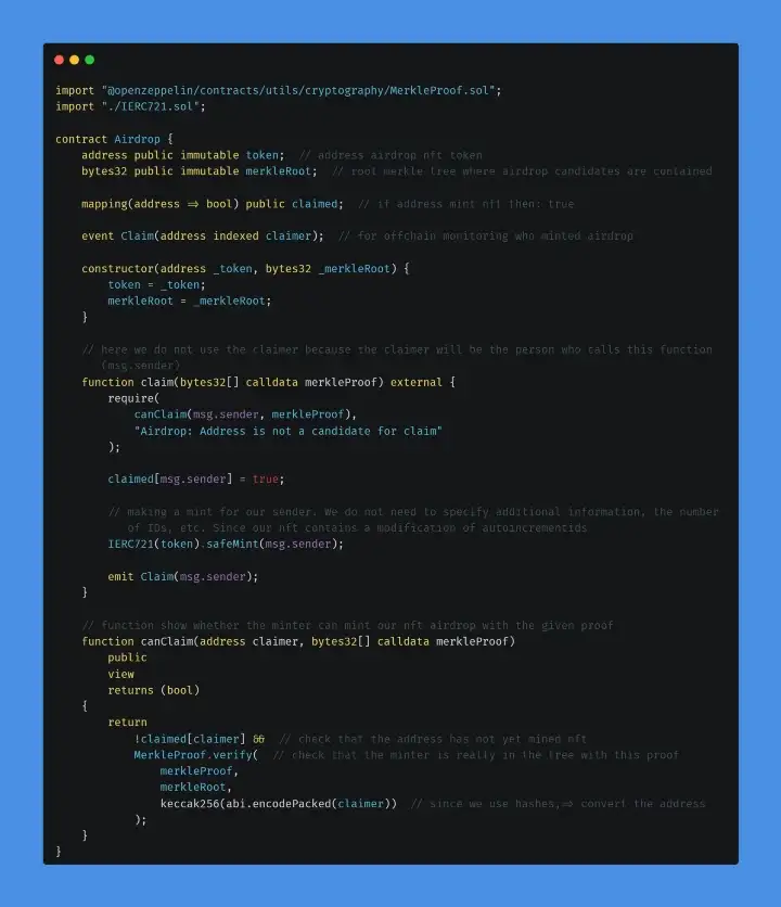 Vamos detalhar o contrato Airdrop.sol: