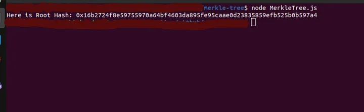 console.log(`Here is Root Hash: ${buf2Hex(tree.getRoot())}`);