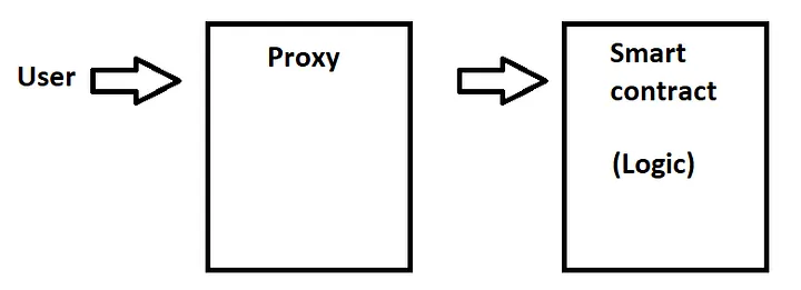Então, qual é a outra solução? Deixe-me apresentar a você, um proxy. Da maneira mais fácil, o proxy é um contrato inteligente que possui um endereço de um segundo contrato inteligente (chame-o de Logic). O usuário, quando quiser utilizar alguma função do Logic, envia a transação com informações sobre o nome da função e o valor de envio, e assim sucessivamente, para o endereço do Proxy. Teoricamente, o Proxy não tem uma função com o mesmo nome que está na Logic, então, as transações do usuário vão para o fallback do Proxy. Existe uma delegatecall (chamada delegada) implementada para o Logic. Como o Proxy usa delegatecall, todas as mudanças de estado serão salvas no armazenamento do Proxy, não dentro do Logic.