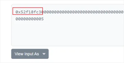 (2) Visualize a primeira transação de ataque através por meio do navegador 0x5a504fe72ef7fc76dfeb4d979e533af4e23fe37e90b5516186d5787893c37991, a assinatura correspondente ao método de contrato chamado pelo invasor é 52f18fc3.