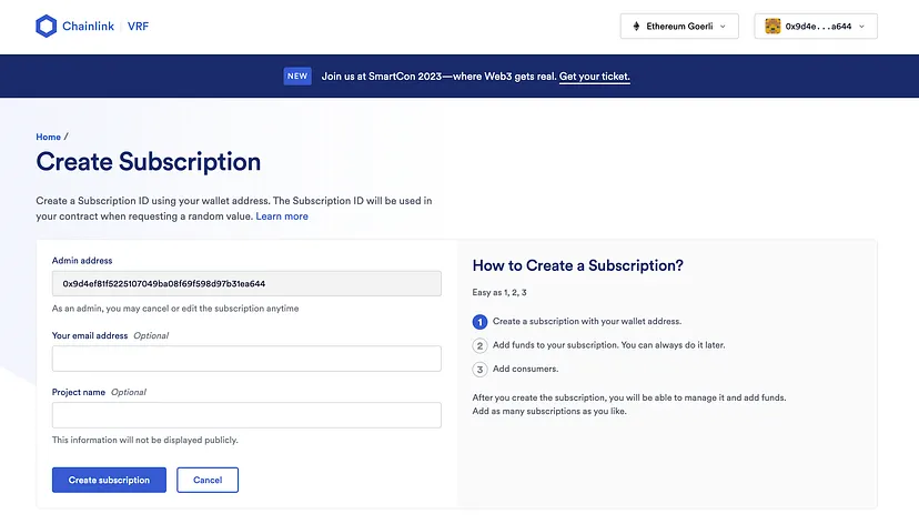 Existem dois métodos para acessar a Chainlink VRF - Método de Assinatura e Financiamento Direto. Mas neste artigo, vou me concentrar no método de assinatura.
