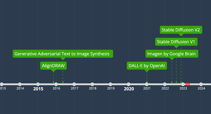 Como podemos ver na linha do tempo, a conversão de texto em imagem é, na verdade, um campo bastante jovem. O surgimento da Stable Diffusion é, na verdade, um marco importante e promoveu o crescimento exponencial desse campo como um modelo de código aberto que requer significativamente menos recursos do que os modelos anteriores.