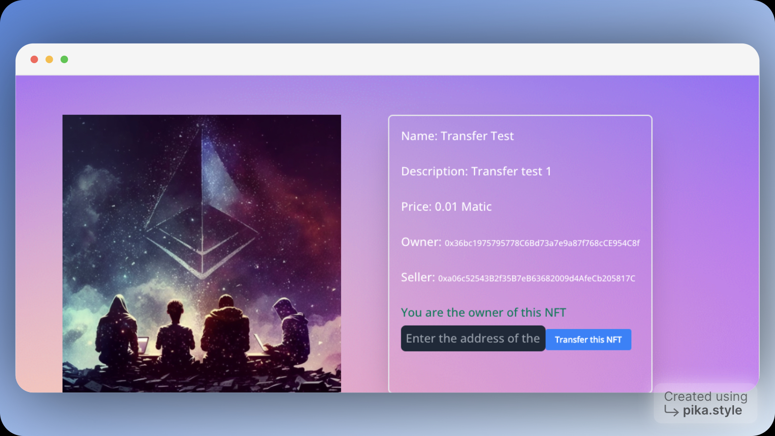 alert(“Você transferiu o NFT com sucesso!”);
