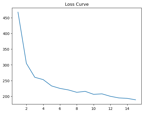 É assim que a curva de perdas se parece. Podemos continuar executando o loop de treinamento por mais épocas.
