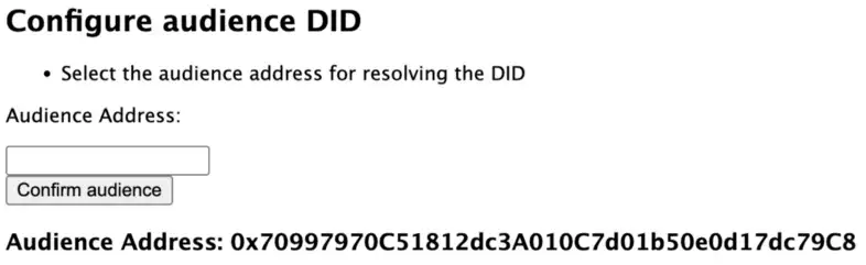 Para este fluxo, verifique se você está conectado à carteira pública na Metamask ou pode configurar o endereço da audiência através do formulário: