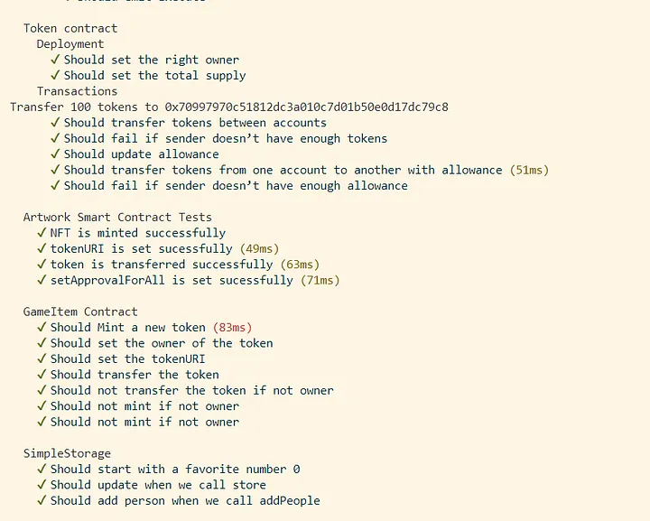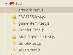 Na pasta de teste, existem vários scripts de teste que abordam diferentes contratos inteligentes.
