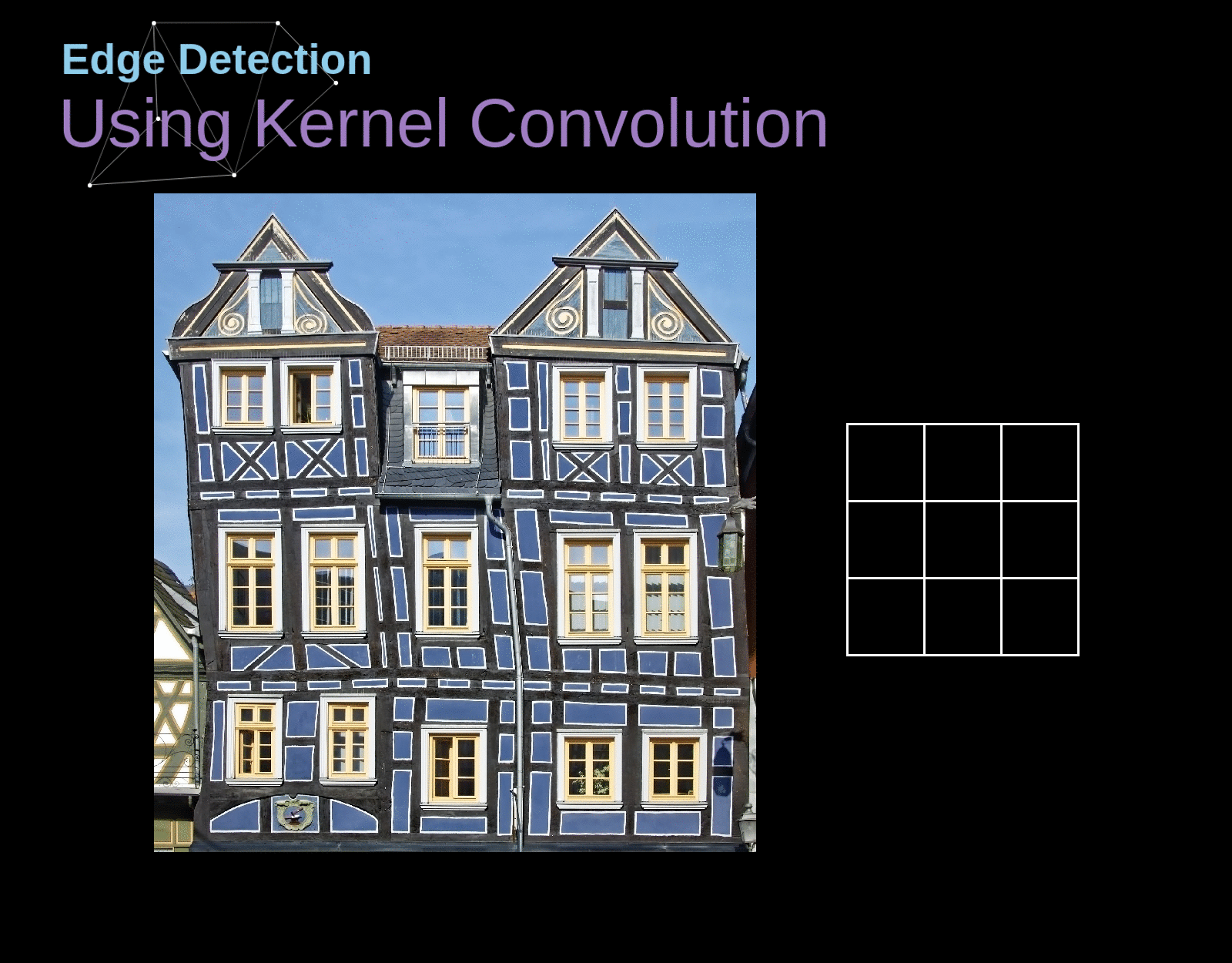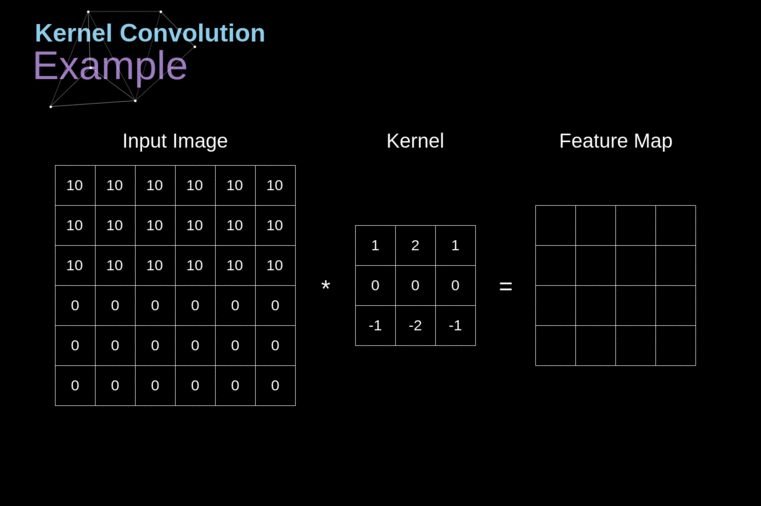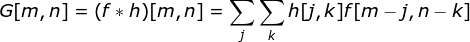 A convolução do kernel é utilizada não apenas em CNNs, mas também é um elemento-chave em muitos outros algoritmos de Visão Computacional. É um processo no qual tomamos uma pequena matriz de números (chamada de kernel ou filtro), passamos sobre nossa imagem e a transformamos com base nos valores do filtro. Os valores subsequentes do mapa de características são calculados de acordo com a seguinte fórmula, onde a imagem de entrada é denotada por f e nosso kernel por h. Os índices das linhas e colunas da matriz resultante são marcados com m e n, respectivamente.