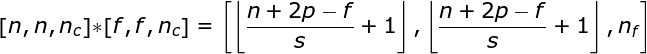 A convolução sobre o volume é um conceito muito importante, que nos permitirá não apenas trabalhar com imagens coloridas, mas, ainda mais importante, aplicar vários filtros dentro de uma única camada. A primeira regra importante é que o filtro e a imagem na qual você deseja aplicá-lo devem ter o mesmo número de canais. Basicamente, procedemos de maneira muito semelhante ao exemplo da Figura 3; no entanto, desta vez multiplicamos os pares de valores do espaço tridimensional. Se quisermos usar vários filtros na mesma imagem, realizamos a convolução de cada um deles separadamente, empilhamos os resultados um sobre o outro e os combinamos como um todo. As dimensões do tensor recebido (como nossa matriz 3D pode ser chamada) obedecem à seguinte equação, na qual: n - tamanho da imagem, f - tamanho do filtro, nc - número de canais na imagem, p - preenchimento usado, s - passo usado, nf - número de filtros.