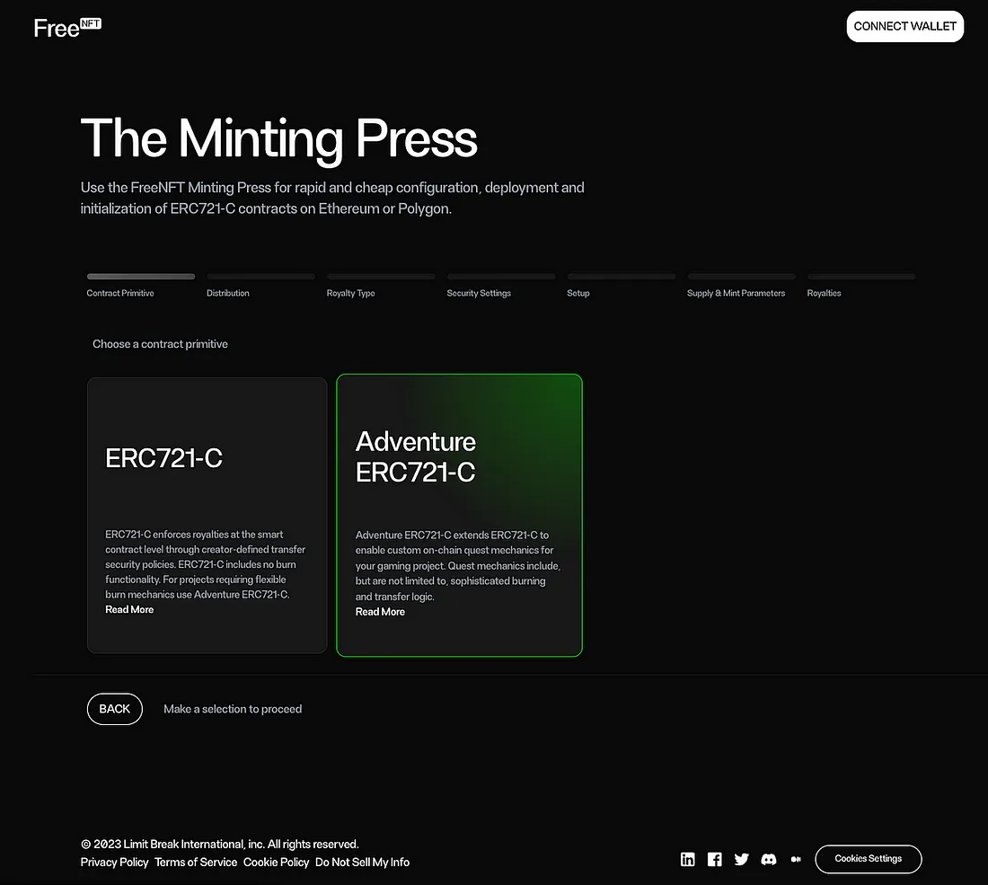 Para este exemplo, escolhemos o Adventure ERC721-C.