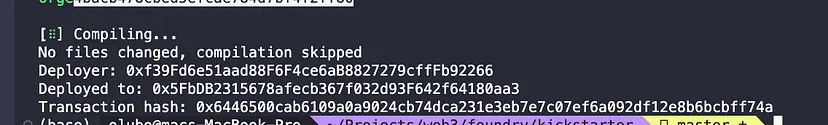 Idealmente, a maneira como queremos implantar nossos contratos usando o Foundry seria escrever scripts de implantação, mas falaremos mais sobre isso no próximo artigo.