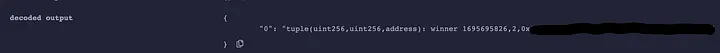Quando o administrador chama a função pickWinner, obtemos uma saída decodificada, como o trecho abaixo.