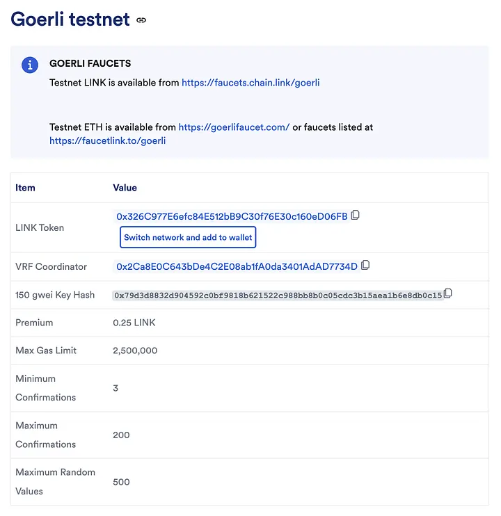 Vamos mergulhar na implementação do sistema Chainlink VRF. Portanto, estaremos implementando nosso contrato inteligente com a Chainlink VRF na rede Goerli.