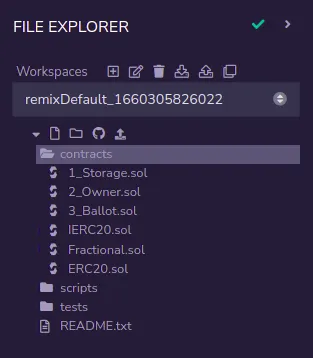 Após o upload, o painel esquerdo do Remix IDE deve ficar assim, com todos os nossos contratos inteligentes: