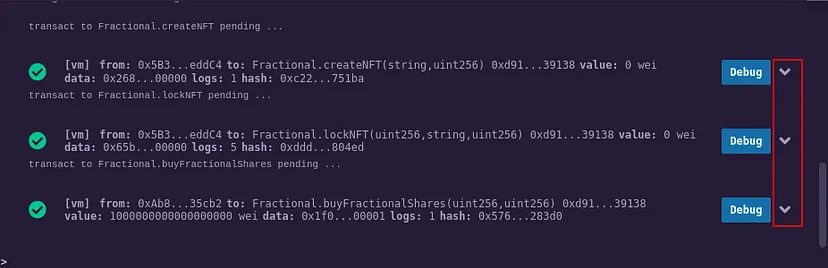Você verá o token ERC20, ou seja, 0x5C9……66d ser transferido para o usuário que compra a parte fracionária.