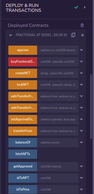 Uma vez implantado o contrato inteligente, podemos usar as funções no próprio IDE. Estas são todas as funções presentes em nosso contrato inteligente implantado: