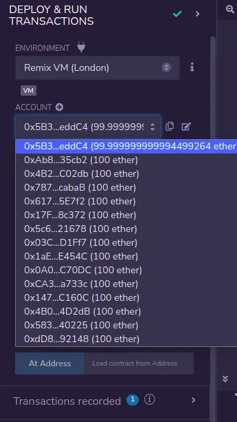 drop downthe accounts tab you will see 0x5B3... account is credited with 1 ether.