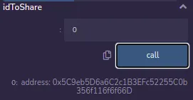 Podemos ver aqui o endereço do token fungível ERC20, criado através do mapeamento idToShare.