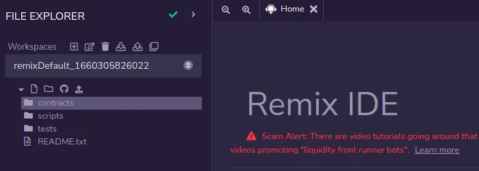 Agora vamos entrar no Remix IDE e carregar os contratos inteligentes da pasta de contratos no repositório que acabamos de clonar.