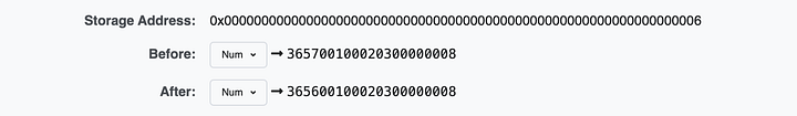 Exemplo de dados da transação do nó atualizando o valor anterior dos dados.