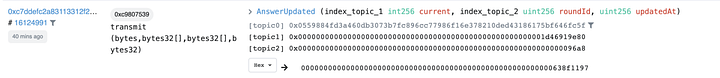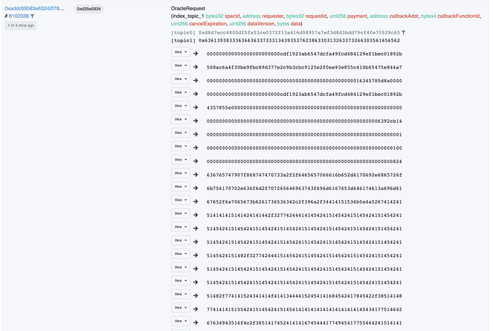 - O nó do oráculo recebe a chamada e, em seguida, emite um evento em seus registros; o nó que possui esse contrato do oráculo fica de olho nos registros para observar um evento específico.