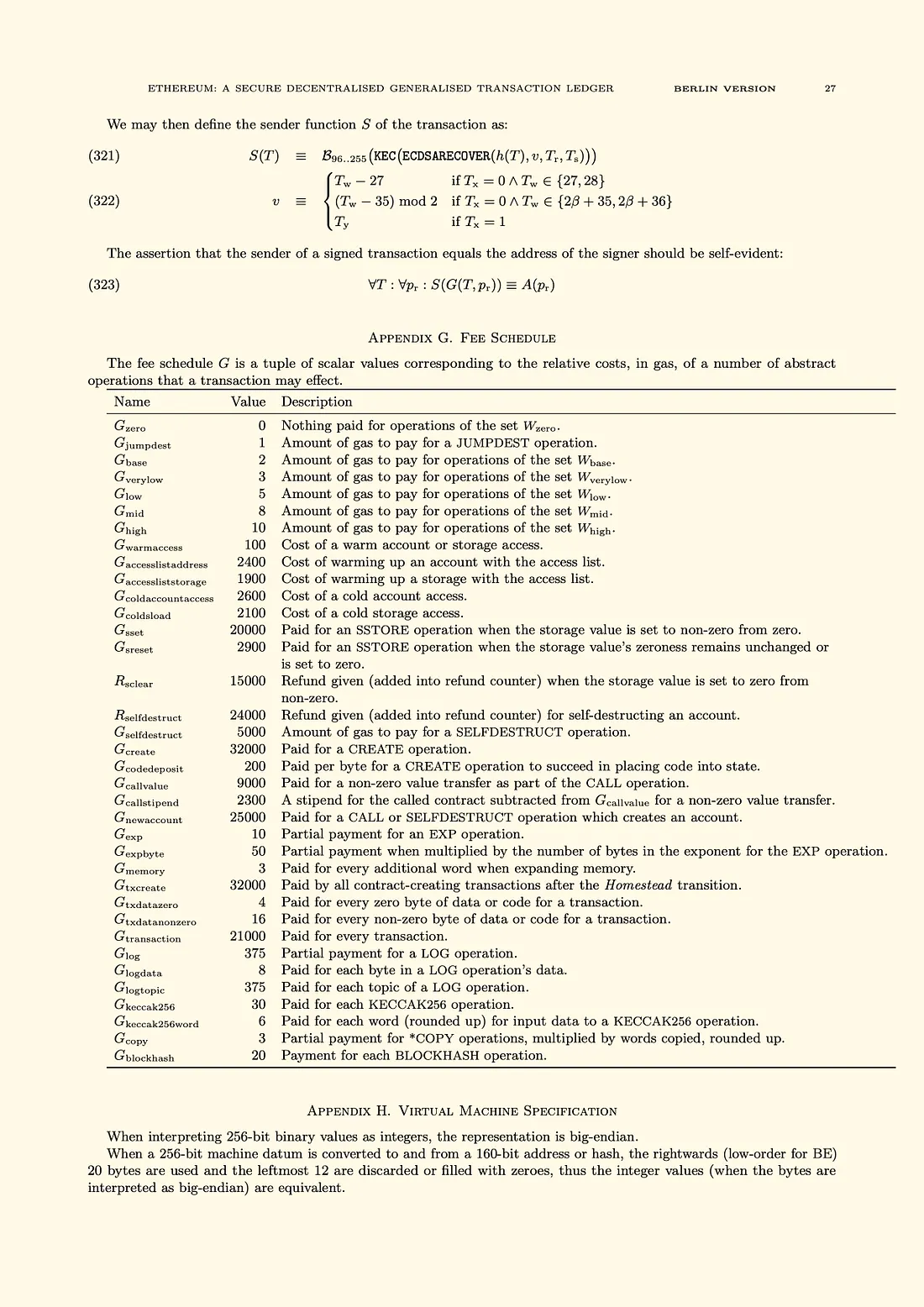 Qualquer fragmento específico de opcode (por exemplo, criar contratos, fazer chamadas de mensagem, acessar armazenamento de conta e executar operações na máquina virtual) possui um custo universalmente acordado em termos de gás, que é registrado no Ethereum yellow paper.