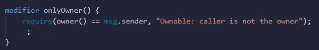 Neste exemplo, um refatoramento é feito na função interna _checkOwner(), permitindo que a função interna seja reutilizada em modificadores. Este método economiza tamanho de bytecode e custo de gás.
