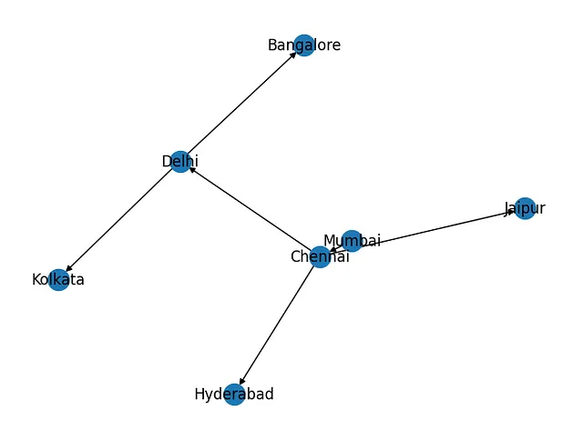 city_graph = [('Chennai', 'Delhi'), ('Mumbai', 'Chennai'), ('Delhi', 'Kolkata'),