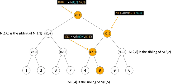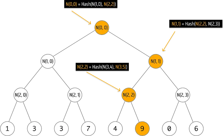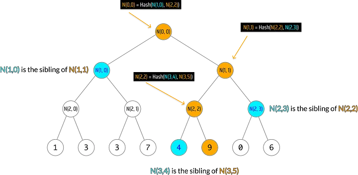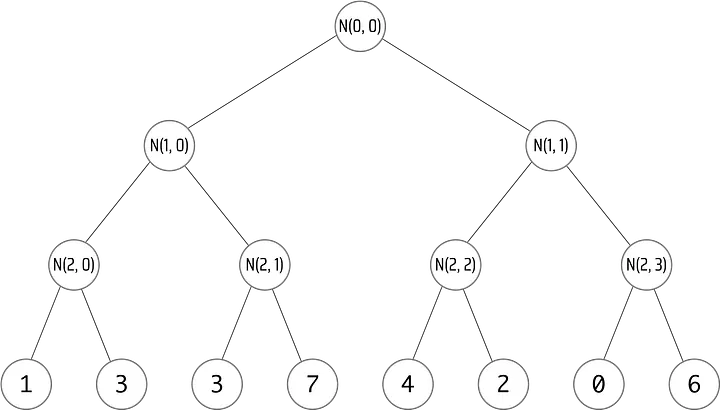 // N(level, index) = Hash(N(level+1, index*2), N(level+1, index*2+1))
