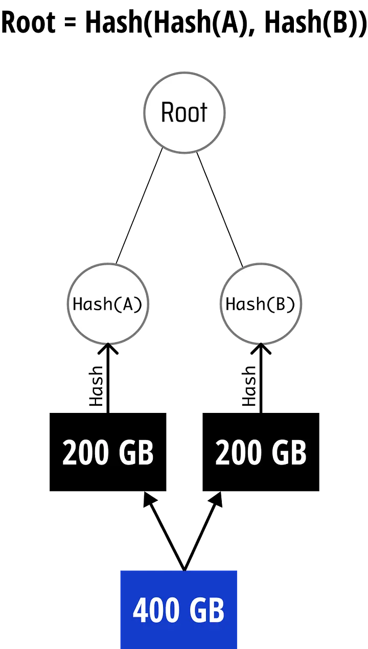 Esse negócio de dividir dados e hashing recursivamente é chamado de construção de uma árvore de Merkle.