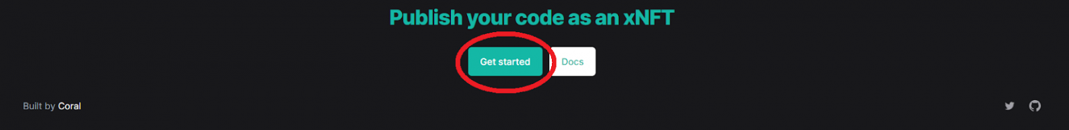 Na parte inferior da página da biblioteca xNFT, você pode usar o botão “Get Started” (começar) se desejar publicar seu código como um xNFT: