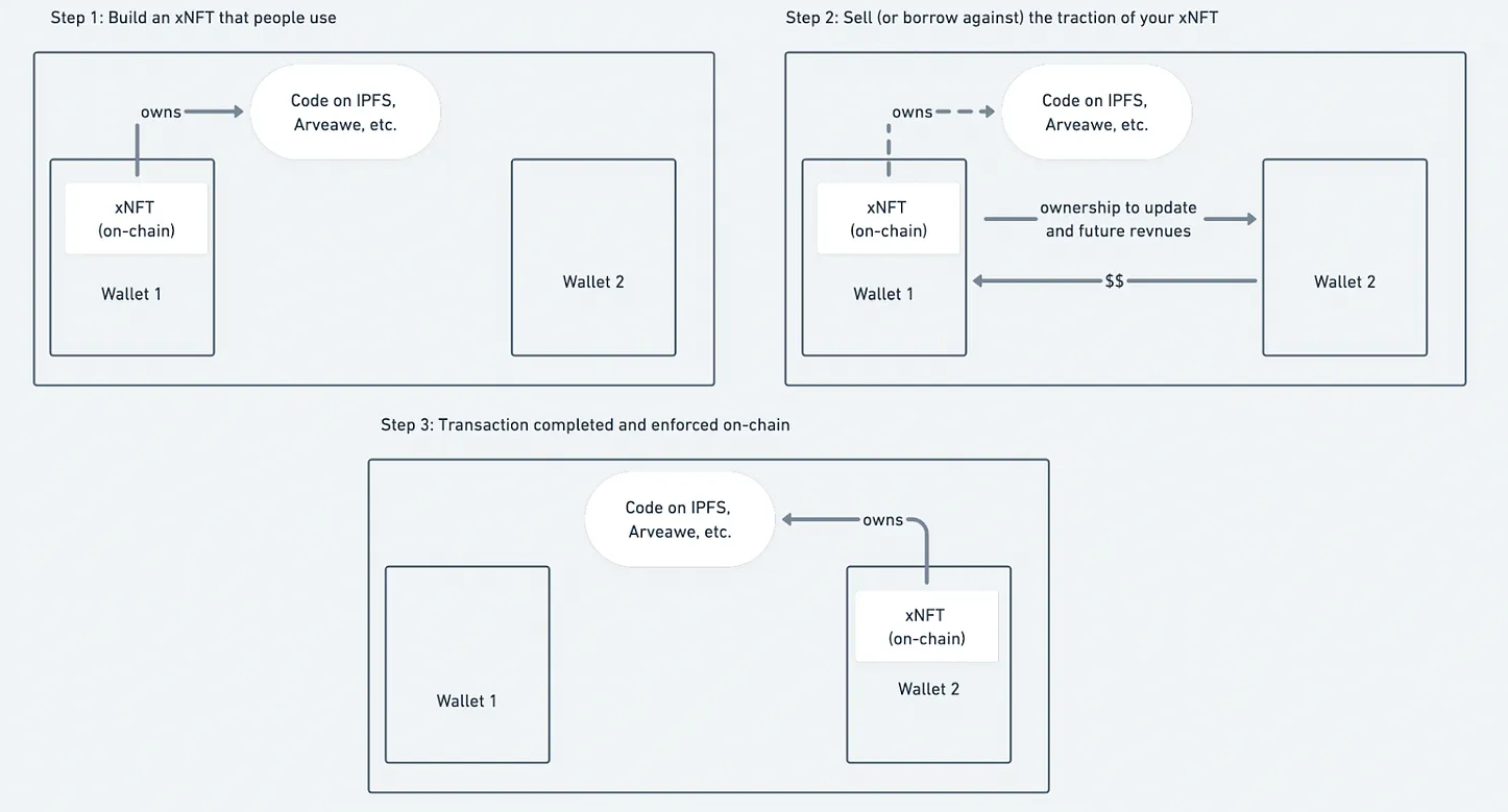 O código para os xNFTs é integrado diretamente aos ativos digitais que eles representam. Isso permite que os usuários acessem seus ativos sem a necessidade de software de terceiros ou vinculando suas carteiras a qualquer site. No entanto, exige que os usuários usem um tipo especial de carteira Web3 que suporte xNFTs.