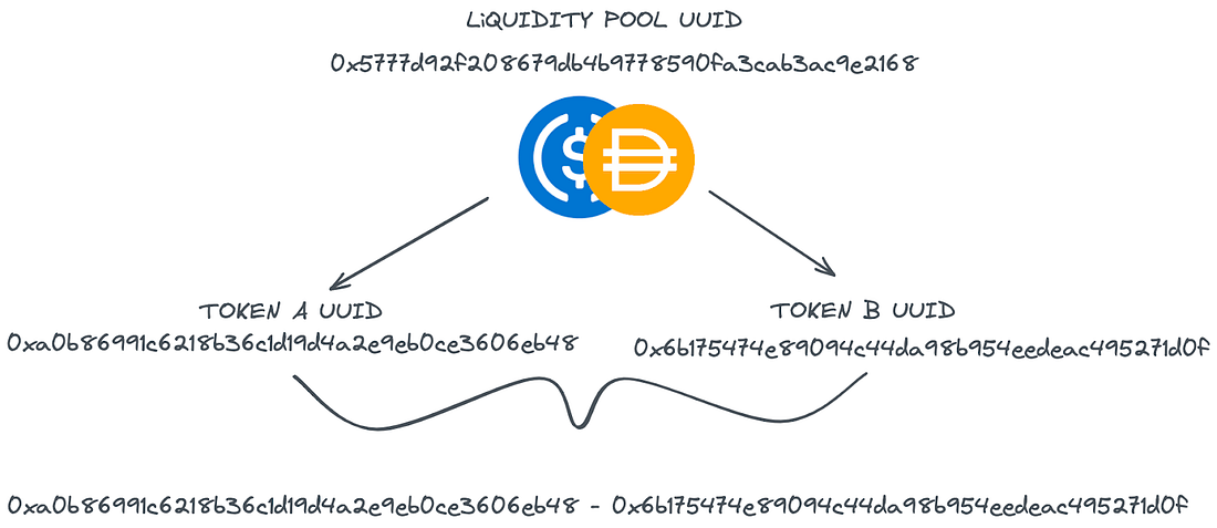 Cada token possui um complemento (de acordo com sua posição indexada) que é reunido novamente para construir uma chave de token. Pegamos cada chave de token e a passamos para o mapa de hash poolAddress, que busca o UUID do nosso pool de liquidez. Pode haver ocasiões em que nossas chaves de token recuperam vários UUIDs. Em outras palavras, outras exchanges possuem as mesmas combinações de tokens.